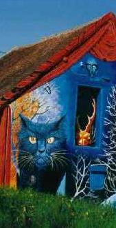 Riesige Fresken erstrecken sich an der Fassade, aber auch im Inneren, in einem extravaganten Zauber: drei Meter hohe Katzen oder riesige Schmetterlinge neben antiken Göttinnen. Die Inszenierung ist theatralisch, mit Vorhängen und Kandelaber. Chop lehnt auch den Titel des Malers ab. Er nennt sich vor allem einen Dichter.