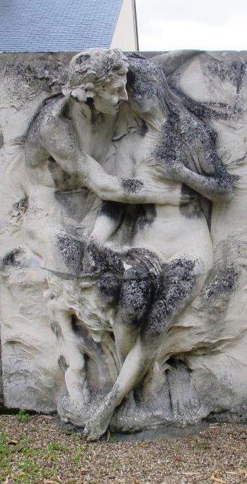 Im Juli 1954 erhält Max Ernst den großen Preis der Biennale in Venedig, der ihm internationale Geltung verschafft. Mit dem Preisgeld ist es für ihn möglich das Haus in Huismes zu erwerben. Max Ernst erwirbt auch noch weiteres Land dazu, sodaß sich hinter dem Haus ein Park erstreckt. In die Parkmauer ließ er Jugenstil-Figuren eines Abbruchhauses aus Paris einfügen. Der Filmemacher Peter Schamoni (der uns für die art-imaginär 2007 von Max Ernst übermalte Replik zur Verfügung stellte) hatte hier auch einen seiner Filme über Max Ernst aufgezeichnet.